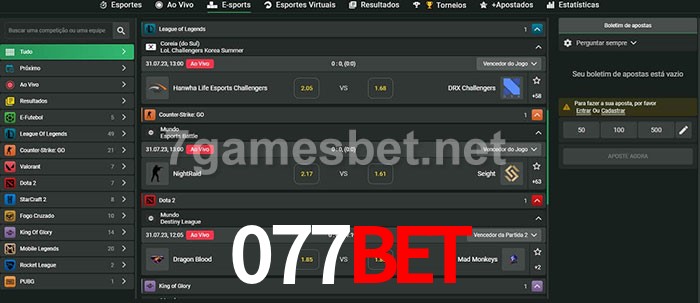 O 077bet oferece uma grande seleção de opções de apostas em e-sports com probabilidades competitivas